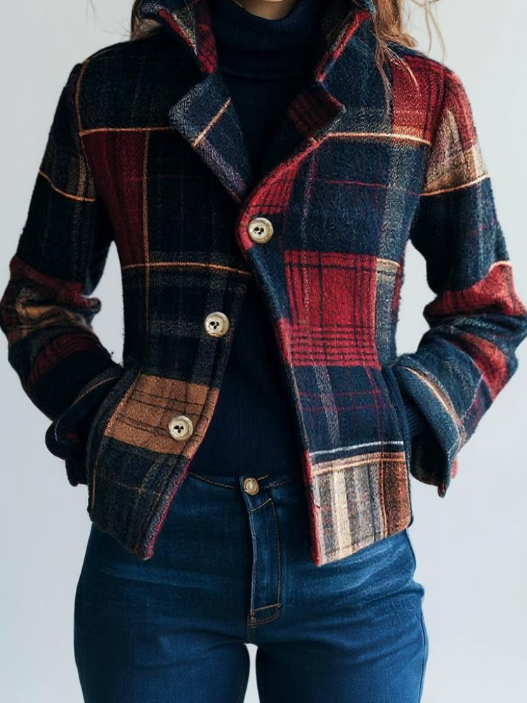 Joyce | Plaid Pattern Woolen Jacket — Classic Warmth Meets Modern Edge